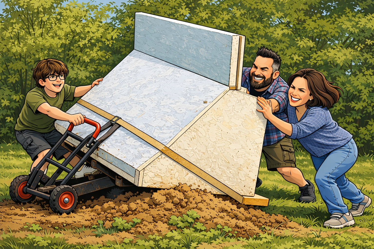 Sometimes family bonding does not look like a board game or a movie night. Sometimes it looks like three people hauling an absurdly heavy BB gun backstop across a lumpy backyard while your teenager screams “PIVOT!” and life with a teen son and a man-child husband is on full display.