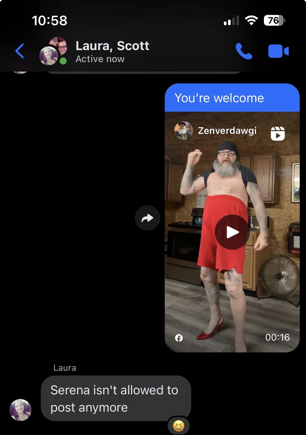 This chat includes me, Scott, and his sister Laura.